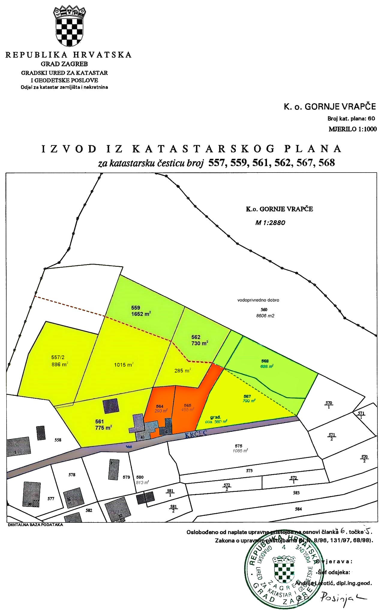 LOKACIJSKA INFORMACIJA za zemljište oznake k.č.br. 557, 559, 561, 562, 567, 568, sve k.o. Gornje VrapčePODSLJEMENSKA ZONA k.o. GORNJE VRAPČE - Urbano pravilo 2.1