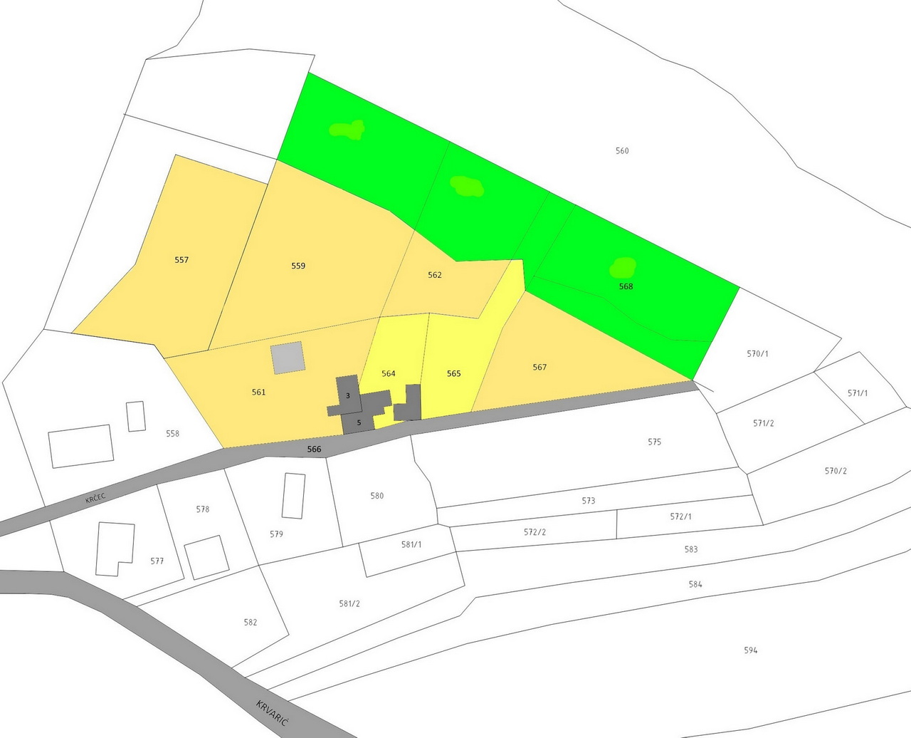 Sveukupno Uzun: KATASTAR: 5.470 m2 *** ZEMLJIŠNE KNJIGE: 7.324 m2 (5244 m2)