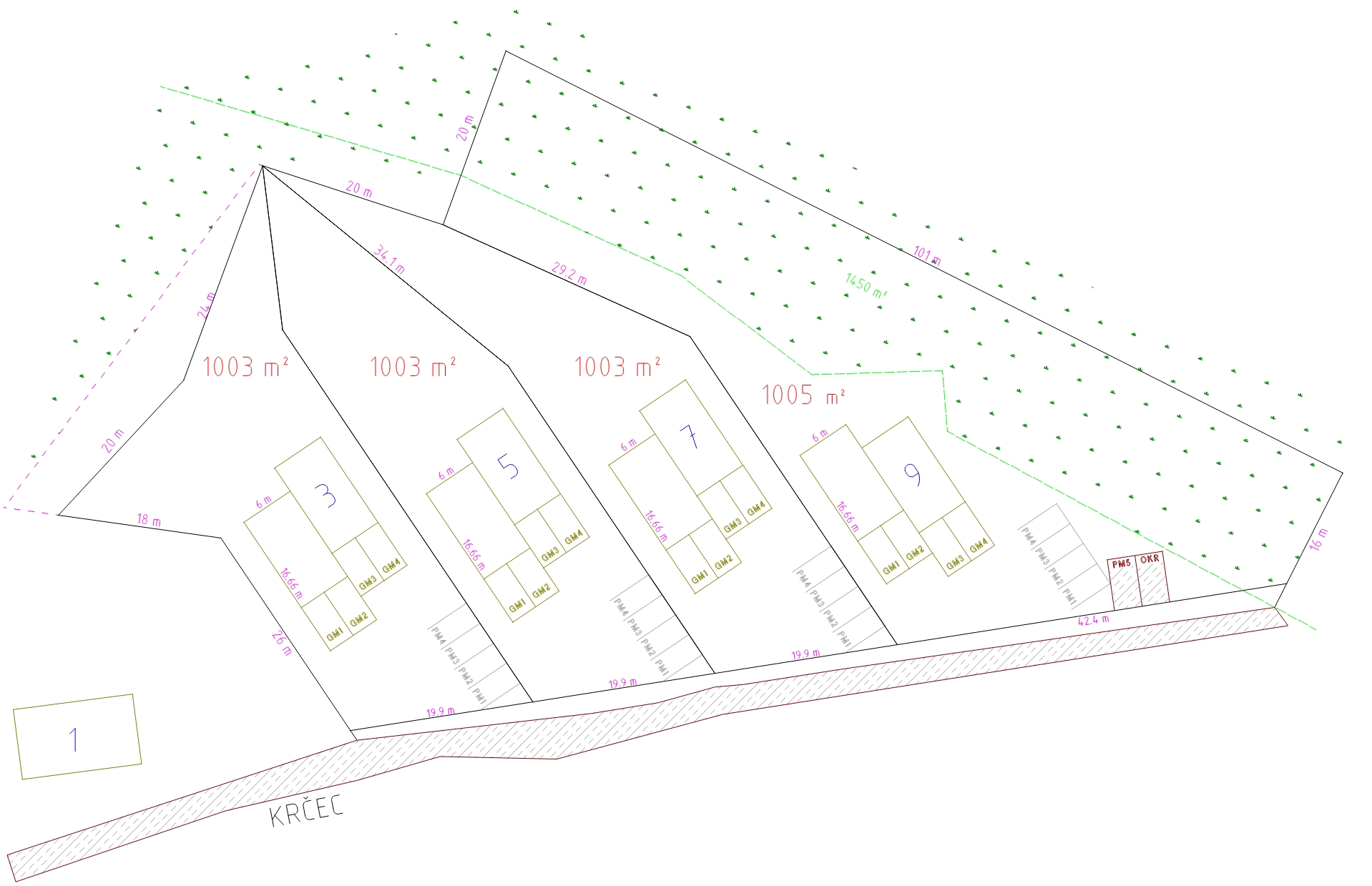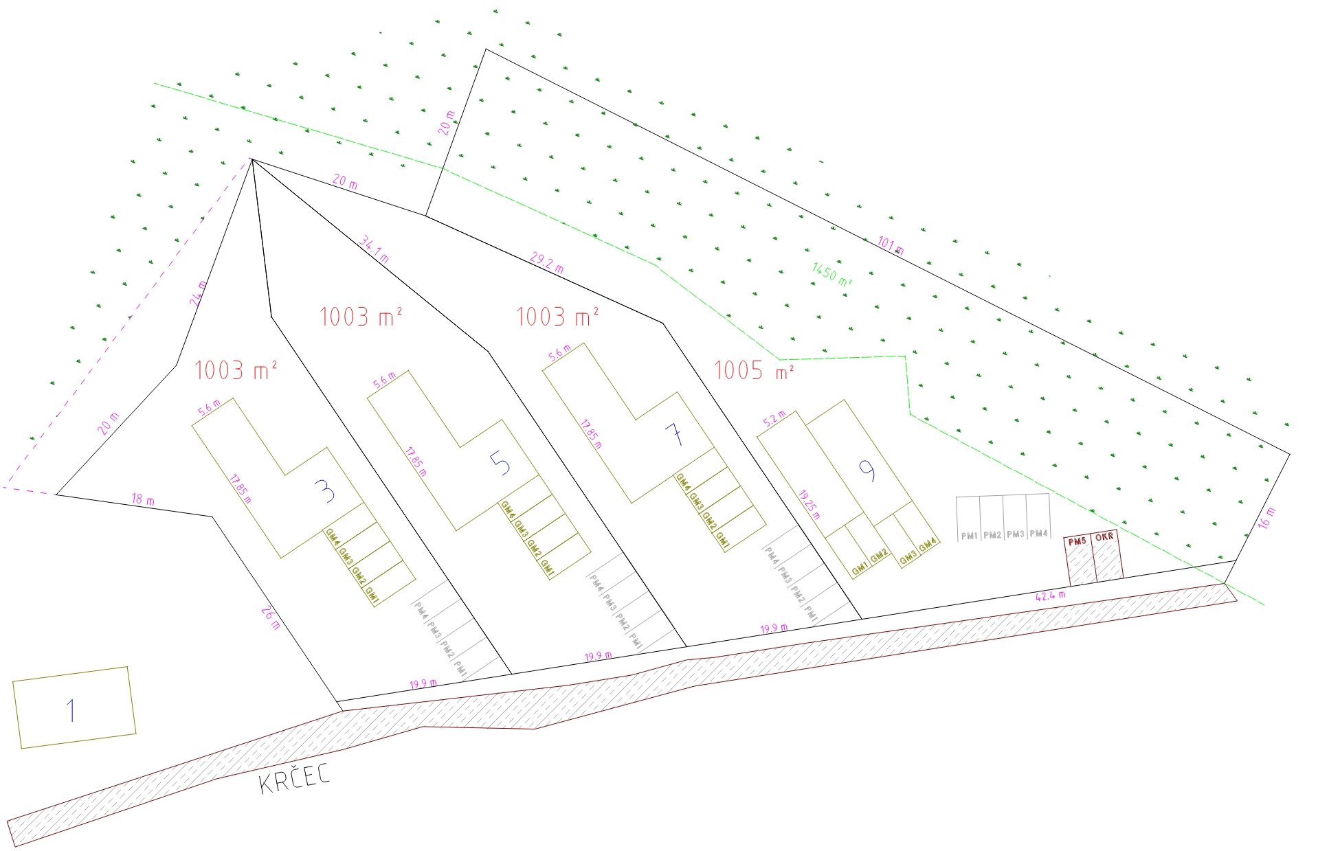 prirodni pad građevinskog terena 5%, zeleni pojas 12%
